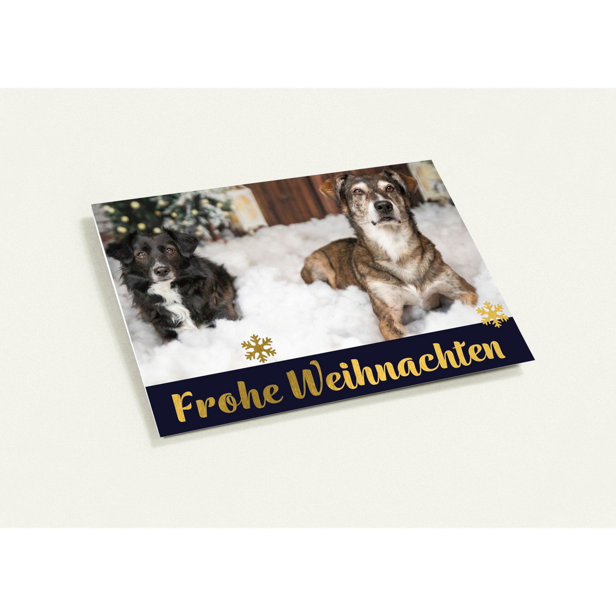 Weihnachtskarte mit Hundemotiv – „Frohe Weihnachten“ | Goldveredelt | Jack & Talina von den Riesertatzen
